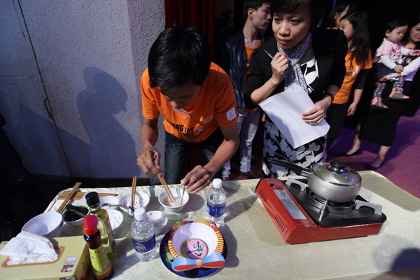 Mọi động tác quấy bột, tắm cho trẻ đều được giám sát chặt chẽ dưới con mắt của các giám khảo.