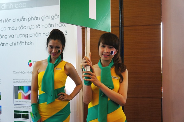Bên cạnh những chiếc ti vi với nhiều công nghệ mới, tại các buổi lễ ra mắt sản phẩm ti vi của Samsung và Sony cũng xuất hiện rất nhiều người đẹp. Đáng chú ý tại lễ ra mắt của Samsung tổ chức tại Đà Nẵng có sự xuất hiện của diễn viên, người mẫu Trương Ngọc Ánh.