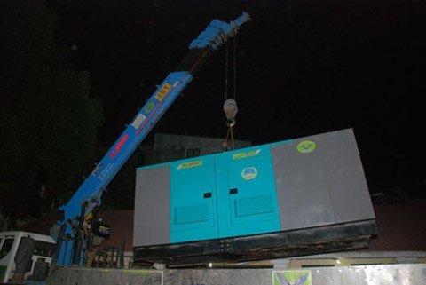| Trong đêm, Xe cẩu lầm lũi đưa máy phát điện vào vị trí, đảm bảo đủ điện cho một ngày lễ lớn |