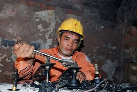 Những ngày nóng nhất cuối tháng 4, đầu tháng 5 vừa qua tại Hà Nội, khi người dân tránh nắng dưới bóng râm hay chui rúc trong những căn phòng điều hòa thì lực lượng khắc phục sự cố điện lại phải căng mình cùng nắng nóng cực điểm. Từ 8-22h, nhân viên các ca trực phải liên tục xử lý sự cố từ nhảy aptomat hòm công tơ của các hộ gia đình, cột điện cháy đến quá tải cục bộ một nhánh ở trạm biến áp.