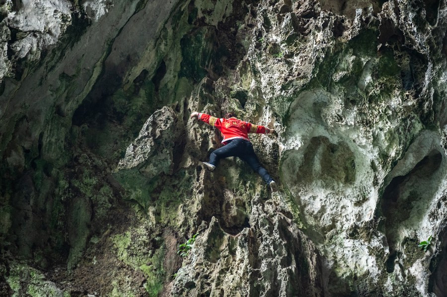 Ngoài Đăng Bình, năm 'người nhện' khác cũng được thuê. Họ biểu diễn trong một hang động có hàng vạn con én làm tổ. Đầu tiên, họ cần chèo một chiếc bè tre vào hang. Sau đó, họ trèo lên những bức tường đá ở độ cao khoảng 100 mét. Rồi quay trở lại điểm xuất phát. Toàn bộ quá trình mất không quá 20 phút.