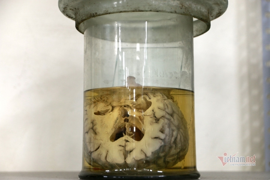 Trong phòng, hàng chục tiêu bản là những bộ phận rời trên cơ thể được đựng trong bình thủy tinh, đặt ngay ngắn trên giá để sinh viên có cái nhìn trực quan nhất về cầu trúc cơ thể người.