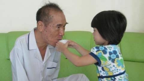 | Đứa cháu yêu rót nước mời ông (thầy Nguyễn Ngọc Ký) |