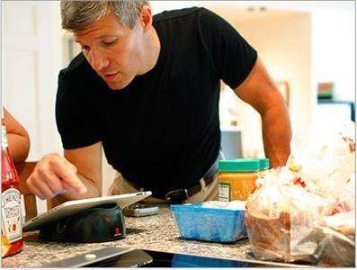 Ed Damiano sử dụng một iPad trong nhà bếp của gia đình ở Acton để theo dõi một khóa học từ xa về Glucos và cách ứng xử với bệnh tiểu đường. Damiano, 12 tuổi - con trai David - đã được chẩn đoán bị mắc bệnh tiểu đường loại 1 từ khi 11 tháng tuổi.