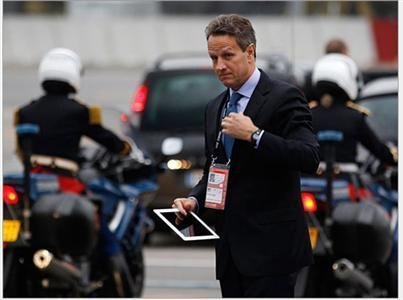 Bộ trưởng Bộ tài chính Mỹ Tim Gaithner với chiếc iPad trên tay trước thềm hội nghị G20 tại Cannes- Pháp.