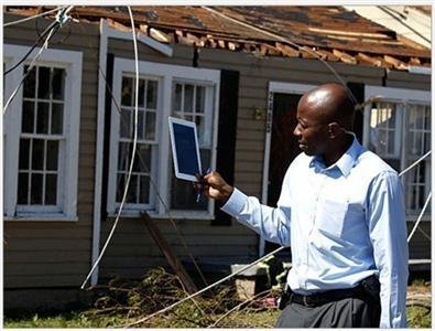 Trợ lý của Tổng thống Barack Obama – Reggie Love – dùng iPad để ghi lại những hậu quả và sức tàn phá khủng khiếp của cơn bão lốc xoáy ở Tuscaloosa, bang Alabama hồi tháng 4 năm 2011.
