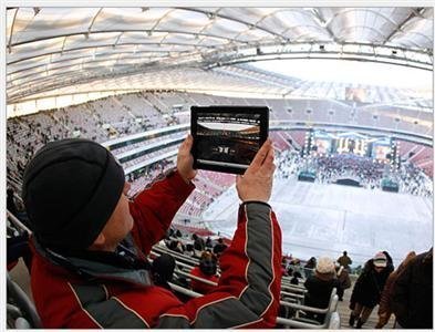 iPad trên tay một người đàn ông trong buổi hòa nhạc đánh dấu sự mở cửa chính thức của sân vận động Quốc gia ở Warsaw – thủ đô của Ba Lan – hồi tháng 1-2012.