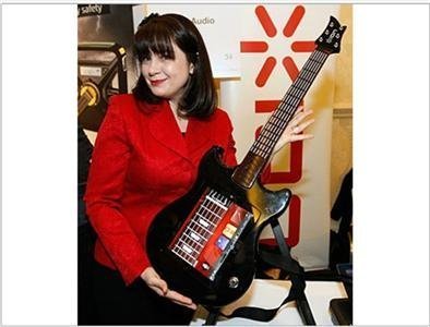Wendy Mittelstadt, Giám đốc sản phẩm của Guitar Apprentice, chụp ảnh với sản phẩm của mình dành cho iPad tại Triển lãm hàng điện tử tiêu dùng.