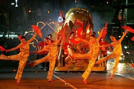Ở Hồng Kông, sự kiện năm mới ở đây bao gồm một cuộc diễu hành vào ban đêm rất lớn ở phố Tsim Sha Tusi, với các diễn viên xiếc quốc tế diễu hành trên phao nổi với trang phục truyền thống, âm nhạc rộn ràng và một màn bắn pháo hoa rực rỡ.