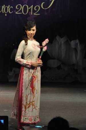Các thí sinh duyên dáng trong phần thi trang phục áo dài truyền thống.