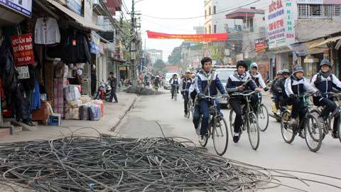 lõi sắt ra đã gây cản trở giao thông, nhất là những lúc cao điểm, học sinh đi
