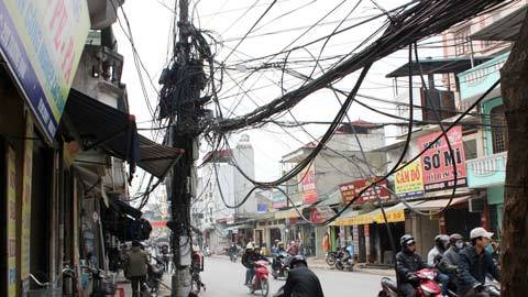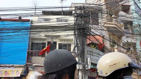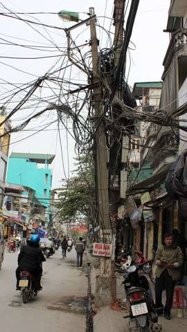trên phố Bạch Mai với đầy đủ thành phần các loại dây dợ...