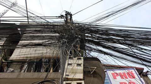 xiêu vẹo trước sự đu bám của các loại dây điện trên đường Trương