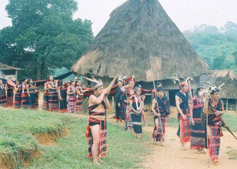 Nhà trai đến nhà gái để đón dâu - một nghi lễ không thể thiếu trong đám cưới truyền thống của người Cơ Tu vùng núi Quảng Nam (Ảnh: Đắk Lắk Online) |