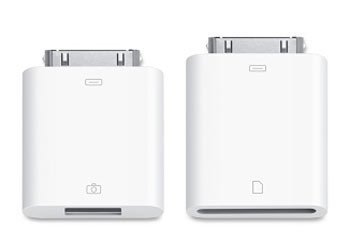 Một trong những thiếu sót đáng tiếc và gây bất tiện nhất trên iPad là việc Apple không cung cấp cho người dùng khe cắm thẻ SD và cổng giao tiếp USB. Nhưng không sao, bộ phụ kiện Camera Conection Kit sẽ giúp bạn đã giải quyết vấn đề tưởng chừng nan giải trên. Bộ Kit này gồm có hai sản phẩm có chân cắm 30 pin có thể kết nối hoàn hảo với khe giao tiếp trên iPad. Một chiếc cung cấp khe cắm thẻ SD, chiếc còn lại có chứa cổng kết nối USB.