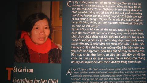| Tâm sự của bà mẹ đơn thân Nguyễn Thị Hạnh (ảnh chụp ở triển lãm) |