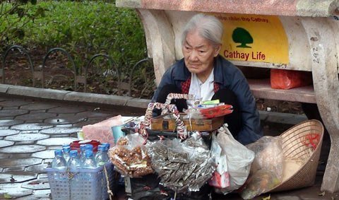 | Bà cụ lão đã 90 tuổi với gánh hàng rong gồng gánh mưu sinh |