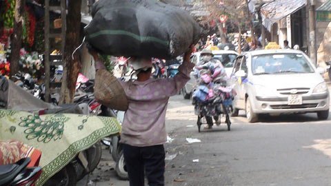 Với họ, ngày nào cũng là ngày phải bươn bả mưu sinh. Họ tất bật với những gánh hàng rong sờn vai áo, mồ hôi chảy dài trên những khuôn mặt đen sạm vì thời gian. Những chiếc xe đạp cũ kỹ, những chiếc rổ, đôi quanh gánh là “cần cầu cơm” nuôi cả mấy miệng ăn.