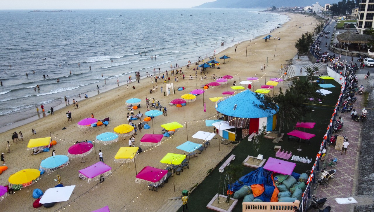 Khu du lịch biển Thiên Cầm ở Hà Tĩnh đang 'hồi sinh' với những quầy bar rực rỡ sắc màu, thu hút du khách và người dân đến vui chơi, check-in.