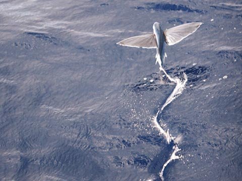 Sinh vật bay kỳ lạ đầu tiên phải kể đến loài cá chuồn Đại Tây Dương (tên khoa học Cypselurus melanurus). Chúng lấy tốc độ bay để vọt lên mặt biển nhờ đập mạnh vây đuôi và giữ thăng bằng trên không nhờ vây ngực. Sau đó, chúng ở trên không được khoảng 45 giây và rớt xuống nước cách chỗ “lấy đà bay” lên đến 500m. Hiện có khoảng 500 loài cá chuồn được biết đến trên thế giới.