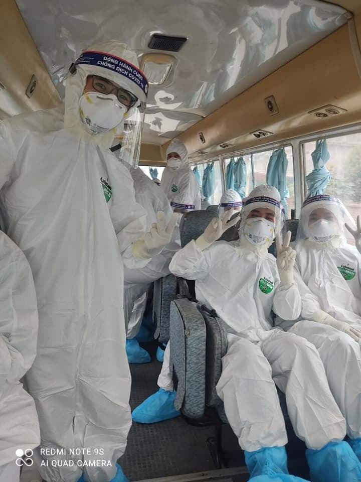 | Sinh viên lên đường làm nhiệm vụ. Ảnh: FB Khoa Xét nghiệm - Trường ĐH Kỹ thuật Y tế Hải Dương |