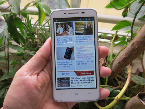 Máy sử dụng màn hình rộng 4.5inch độ phân giải 480x854 pixel, hỗ trợ lướt web, chơi game khá hiệu quả.