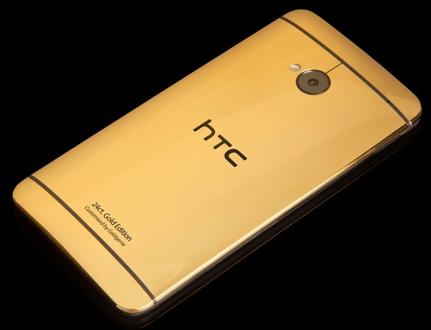 HTC One M7 phiên bản bằng vàng, vàng hồng và bạch kim có giá 3203 USD. Bạn có thể mua HTC One Mini bằng vàng với giá rẻ hơn, 2527 USD.