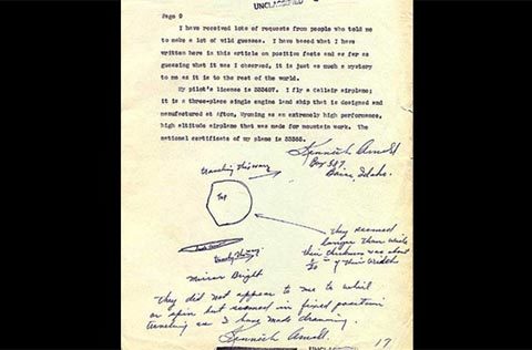 Chỉ một vài ngày sau sự cố "người đàn ông vận đồ đen", Kenneth Arnold thông báo đã nhìn thấy 9 UFO bay trên vùng trời gần núi Ranier, Washington. Báo chí đặt ra thuật ngữ "đĩa bay" để mô tả các vật thể này. Arnold khăng khăng câu chuyện của mình và trở thành một người nổi tiếng trong thế giới của những điều huyền bí.