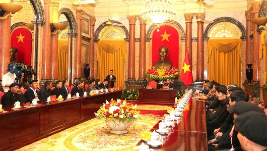 Để phát huy hơn nữa thành tích, vai trò của người có uy tín tiêu biểu trong đồng bào các dân tộc, Chủ tịch nước đề nghị các bộ, ngành, địa phương, trong đó có tỉnh Hà Giang bổ sung, hoàn thiện chính sách trong lĩnh vực này; tiếp tục triển khai tốt các chính sách đã ban hành; đặc biệt là phát huy vai trò người có uy tín trong đồng bào dân tộc thiểu số nhằm góp phần thực hiện hiệu quả công tác dân tộc.