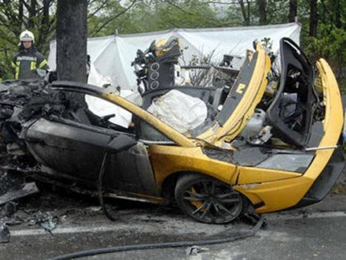 Đầu tháng 5/2010, một đại lý Lamborghini ở Wupertal (Đức) đã cho khách hàng chạy thử chiếc Gallardo màu vàng. Đường trơn ướt, vượt xe khác ở tốc độ cao, “chú bò tót” không may bị trượt văng lên không trung rồi lao đầu xuống cột đèn đường và bốc cháy. Hậu quả, cả 2 người ngồi trên xe đều thiệt mạng.
