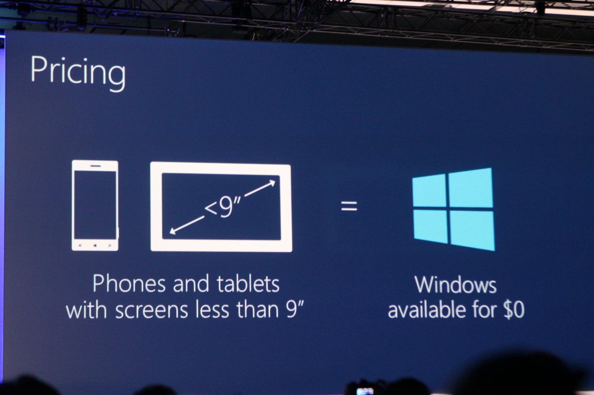 Microsoft sẽ cung cấp Windows miễn phí cho các công ty sản xuất thiết bị nhỏ hơn 9 inch. Nói cách khác, Windows Phone và tất cả phiên bản Windows chạy trên tablet cỡ nhỏ đều được miễn phí. Đây không phải cách làm của Microsoft trong truyền thống nhưng khi Android đang thống trị thị trường di động, công ty không còn giải pháp nào khác.