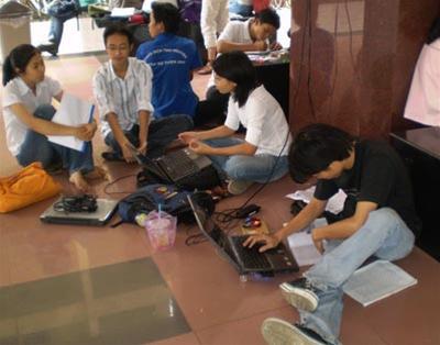 Dùng wifi miễn phí của các sinh viên trường Nhân Văn |