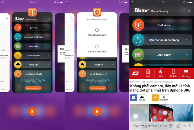 Tận dụng không gian màn hình lớn của Bphone, BOS 8.6 cho phép người dùng dễ dàng chia đôi màn hình để sử dụng hai cửa sổ ứng dụng cùng lúc. Với chế độ này, người dùng hoàn toàn có thể nâng cao khả năng đa nhiệm của máy khi sử dụng nhiều tác vụ cùng một lúc, từ đó gia tăng chất lượng công việc.