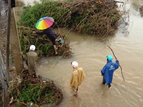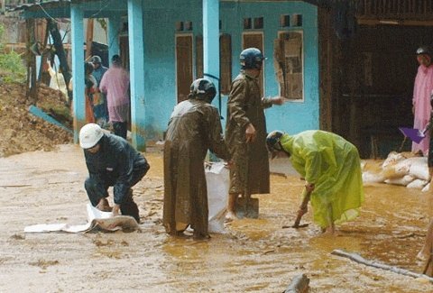 | Giúp dân dọn dẹp nhà cửa sau lũ rút tại Nông Sơn |