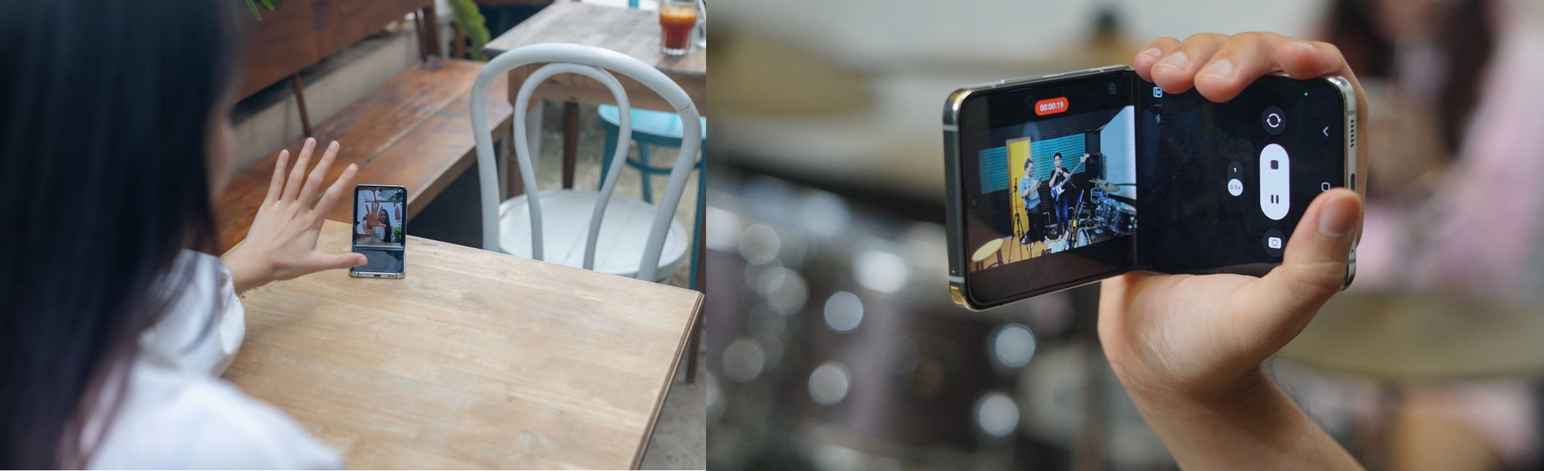 Mong muốn trở thành vlogger chuyên review ẩm thực, Minh Ngọc (24 tuổi, TP.HCM) cho biết cô mất nhiều thời gian cho việc chọn thiết bị quay phù hợp: “Cầm thiết bị quá cồng kềnh đi review khiến tôi cảm thấy rất ngại. Tôi chọn Z Flip5 cũng bởi máy chỉ lớn bằng bàn tay, thiết kế gập độc đáo, dễ dàng đặt quay ở nhiều vị trí mà không cần chân máy”.