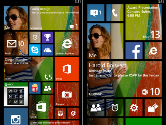 Với Windows Phone 8.1, một bức ảnh có thể được phủ lên các ô Live Tiles trên màn hình chủ và hoạt động như hình nền. Bản cập nhật cũng cho phép bạn lựa chọn kích cỡ và số lượng những ô được hiển thị trên màn hình chủ. Do đó, bạn có thể giữ cho màn hình khỏi lộn xộn và tạo số lượng biểu tượng tùy theo ý thích.