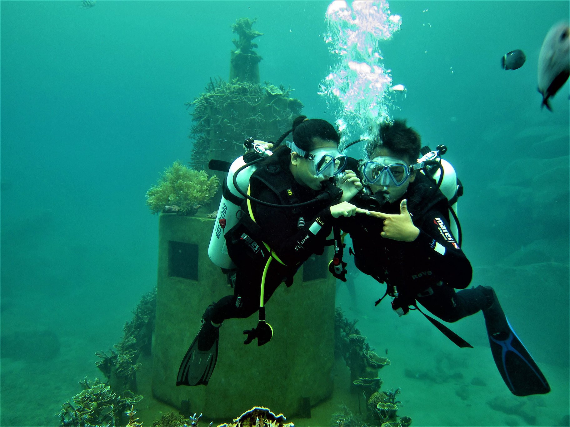 Một trong những trải nghiệm không thể bỏ lỡ là màn “biến hình” thành nhà thám hiểm đi bộ dưới đáy biển ở bãi lặn Ocean Home tại Vinpearl Nha Trang.
