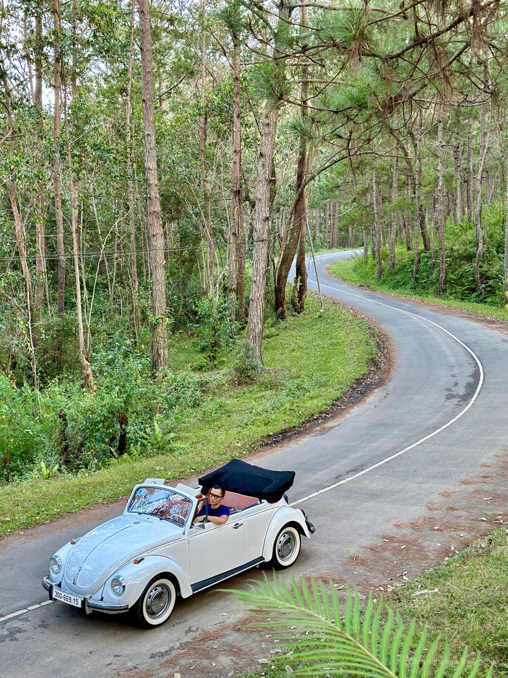 Chiếc Volkswagen Beetle 1960 được tân trang rất đẹp. Cảm giác cầm chiếc vô-lăng kim loại, nghe tiếng máy từ khối động cơ đã ra đời trước khi mình được sinh ra thật sự có nhiều cảm xúc. Lại được nghe những bài hát tiếng Anh bất hủ qua chiếc loa Marshall đặt ở gầm xe, thật tuyệt! Tấm ảnh chụp cận cảnh ở trên cho thấy điện thoại chuyển rất mượt mà phần nét ở mui xe với phần hậu cảnh được làm mờ. Ánh nắng chiều lung linh phản chiếu lên xe và từ xa ở đồi thông cũng rất đẹp.