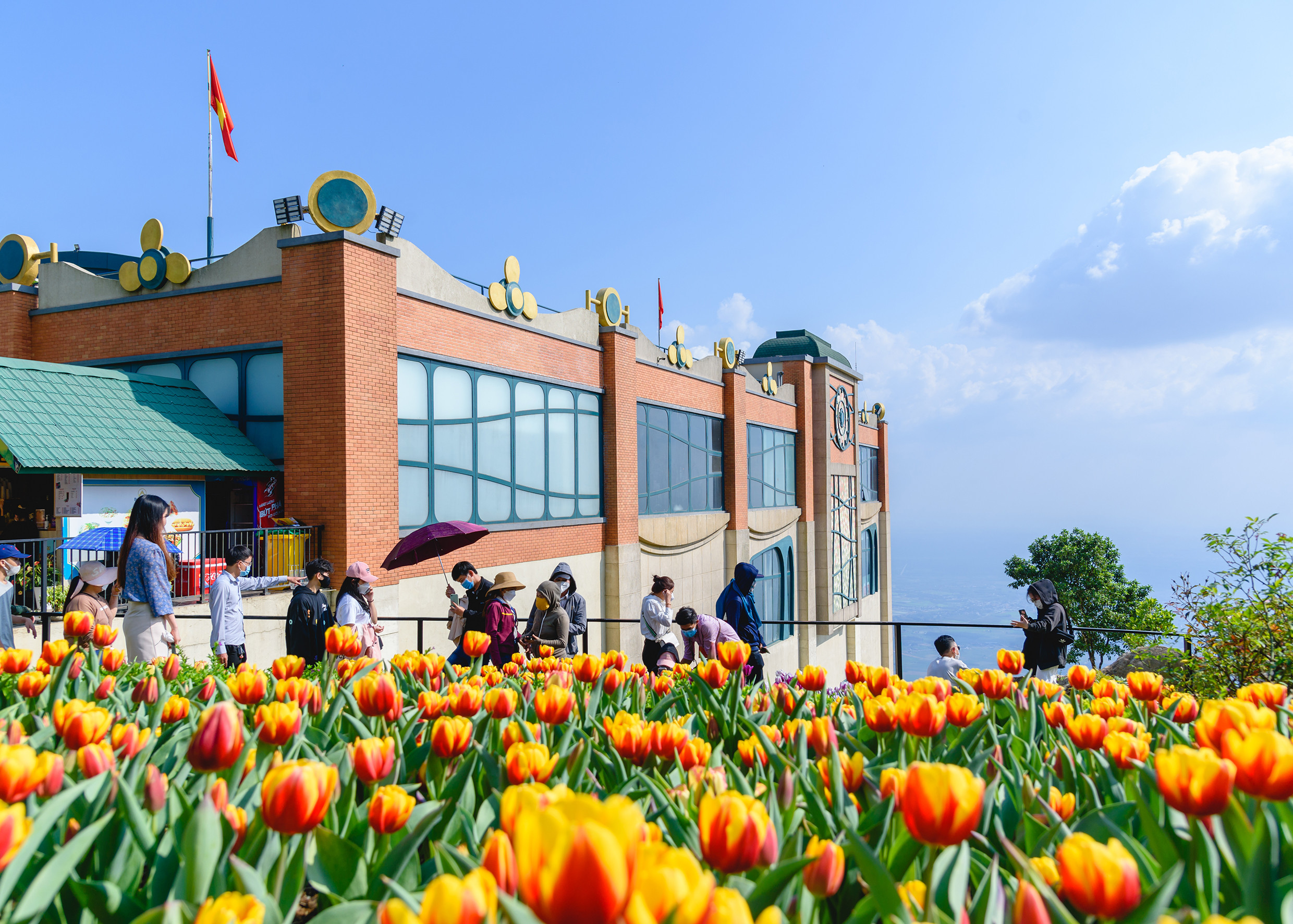 Đến Sun World Ba Den Mountain dịp Tết này, du khách sẽ được sống trong sắc xuân tưng bừng nơi đỉnh cao 986m, với hơn 30 loài hoa các loại, hơn 400.000 cây và hơn 100.000 cây hoa tulip trưng bày thành nhiều đợt tại đỉnh núi.