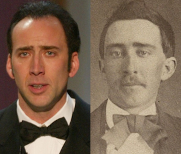Ca sĩ, diễn viên người Mỹ Justin Timberlake (trái) và một người đàn ông bí ẩn năm 1870Diễn viên nổi tiếng Hollywood Nicolas Cage (trái) và một người đàn ông thời nội chiến MỹDiễn viên kỳ cựu Anthony Hopkins (phải) và triết gia thời Hy lạp cổ đại SocratesRupert Grint (phải) - diễn viên nổi tiếng với vai Ronald Weasley trong loạt phim Harry Potter và Sir David Wilkes- họa sĩ người Scotland sinh vào những năm 1780Nam diễn viên Charlie Sheen (trái) và người hùng chiến tranh John BrownTài tử Shia LaBeouf (trái) và nhà vật lý vĩ đại nhất mọi thời đại Albert EinsteinDiễn viên Christopher Lloyd (trái) và cựu Phó tổng thống Mỹ John C. CalhounNữ diễn viên Mỹ Maggie Gyllenhaal (phải) và nhà văn, nhà báo nổi tiếng Rose Wilder LaneTài tử điện ảnh Bruce Willis (phải) và Tướng Mỹ Douglas MacArthurRapper Jay-Z (phải) và người đàn ông sống ở Harlem vào những năm 1930
