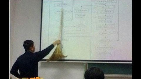 Một số giáo viên đã sử dụng chổi làm thước kẻ, khiến không khí căng thẳng của lớp học thêm phần sống động.