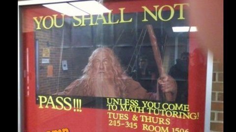 | Tấm biển quảng cáo gia sư viết: “Bạn sẽ không thi qua trừ khi tới lớp học thêm môn Toán vào 2h15-3h15, thứ Ba và thứ Tư, phòng 1506 |