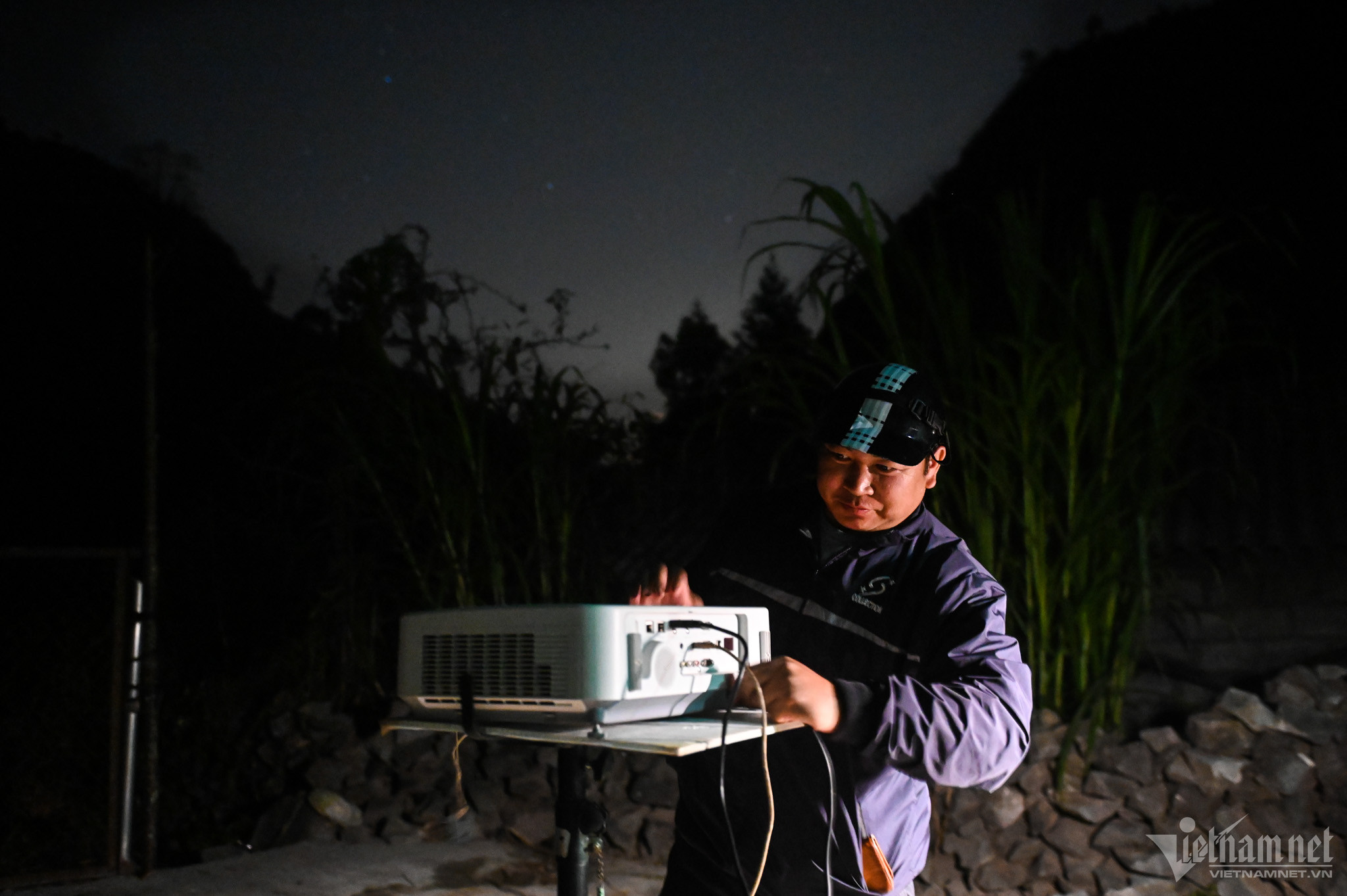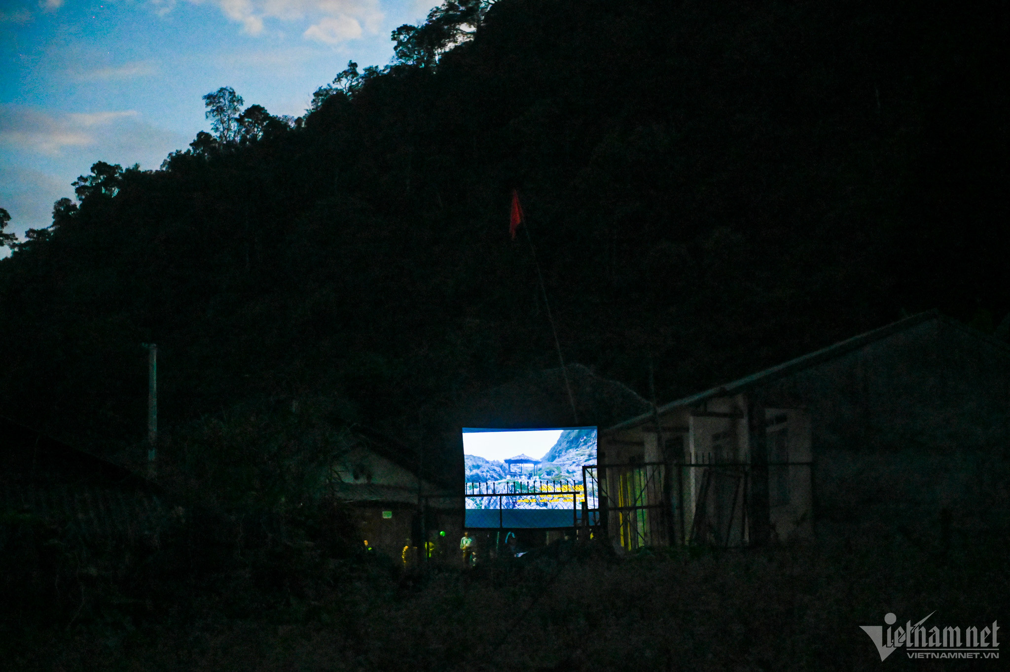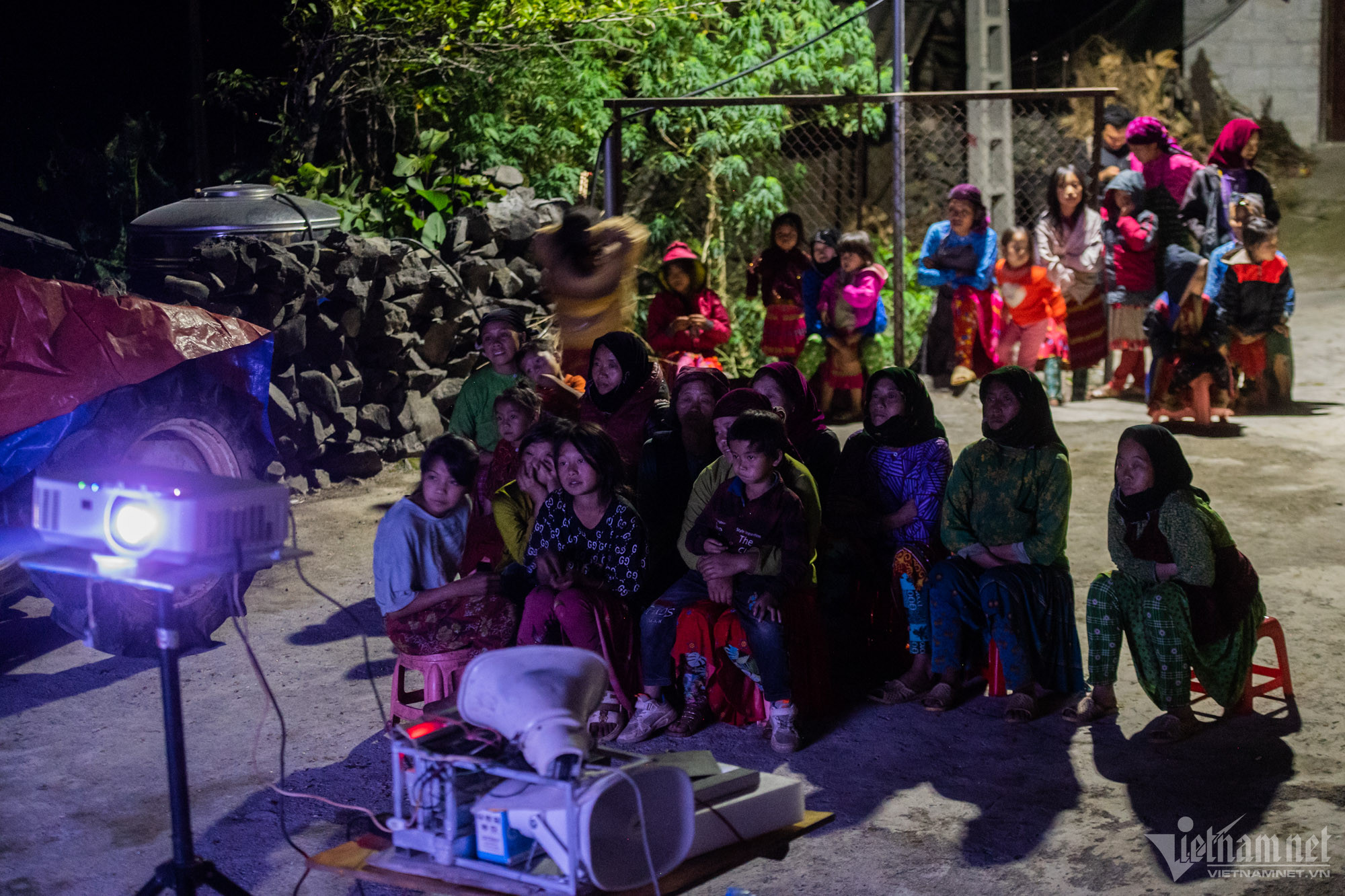 Lúc này, trời sao trên đầu lấp lánh rực rỡ. Từng cơn gió lạnh của vùng cao nguyên đá tràn xuống. Anh Tuân xoa đôi bàn tay rồi co ro ngồi ở góc hiên nhà. Quá quen với những thước phim một tuần chiếu vài lượt, nam tuyên truyền viên không nhìn về phía màn hình đang sáng. Thay vào đó, anh hướng mắt về phía các khán giả đang chăm chú dưới kia. Thỉnh thoảng Tuân rời vị trí để điều chỉnh hệ thống âm thanh hoặc đổi sang video khác.