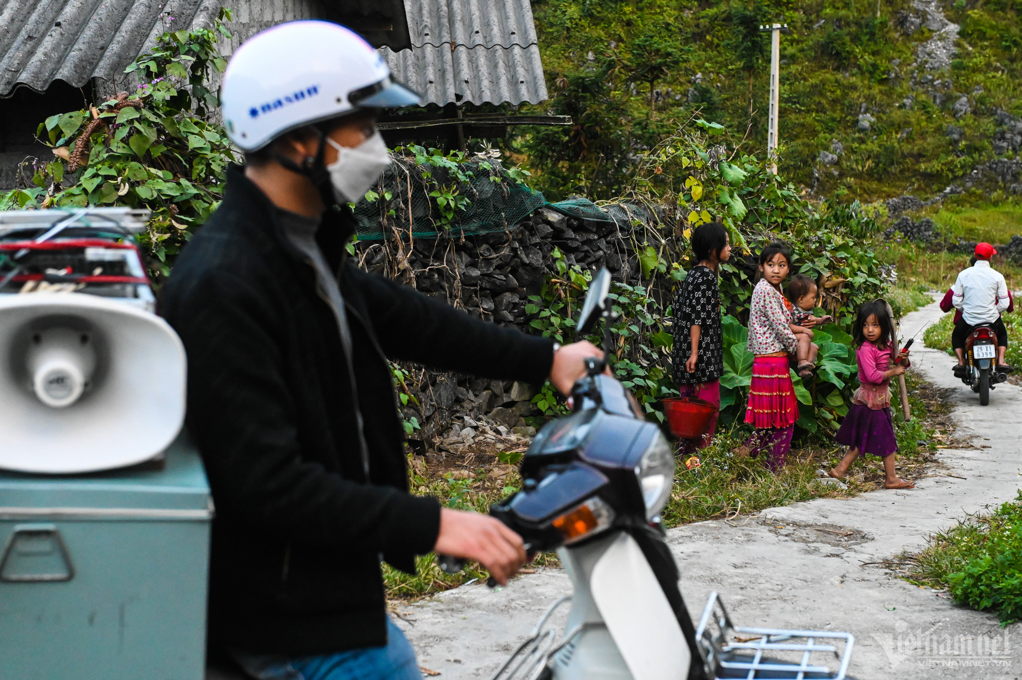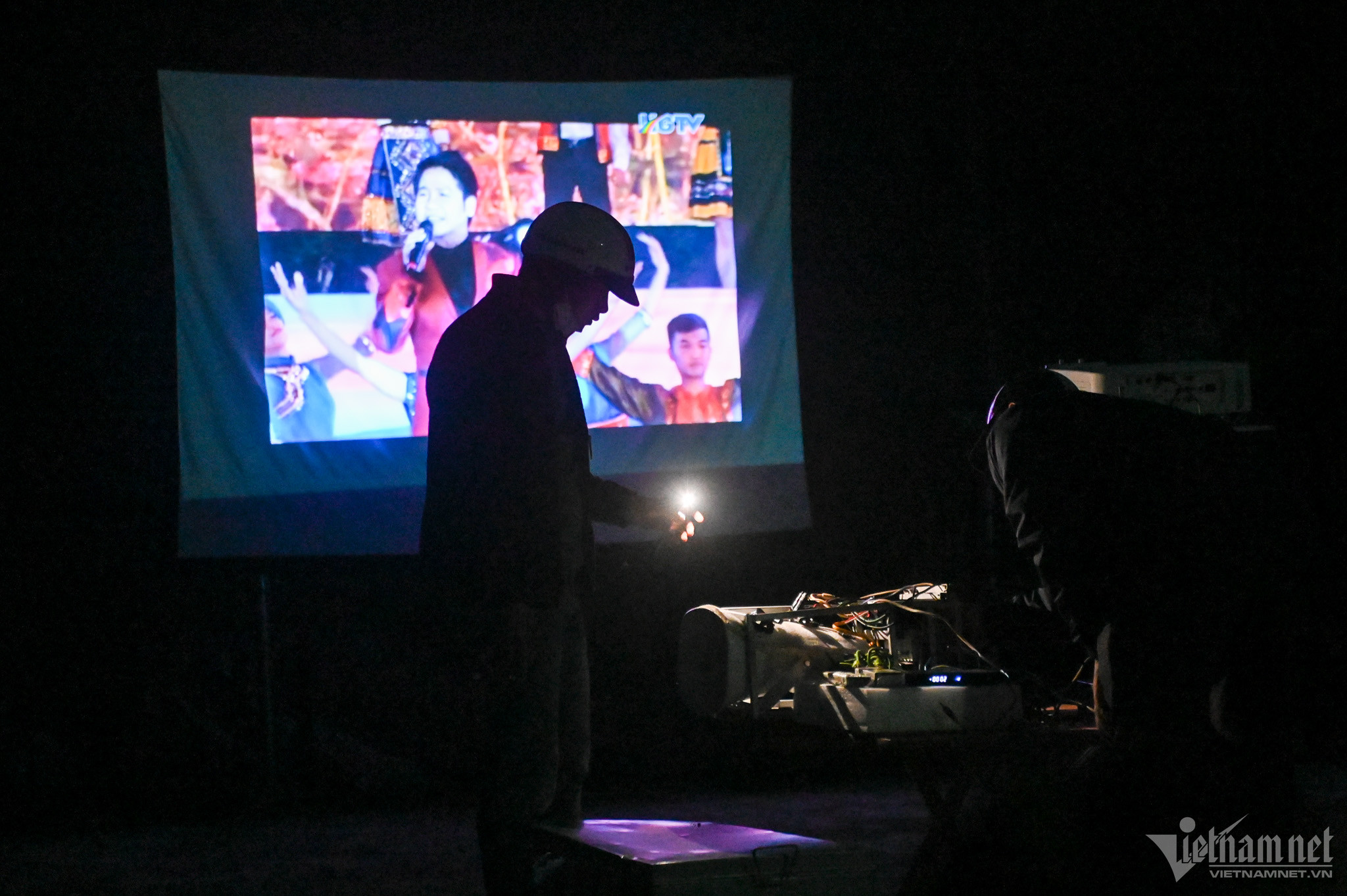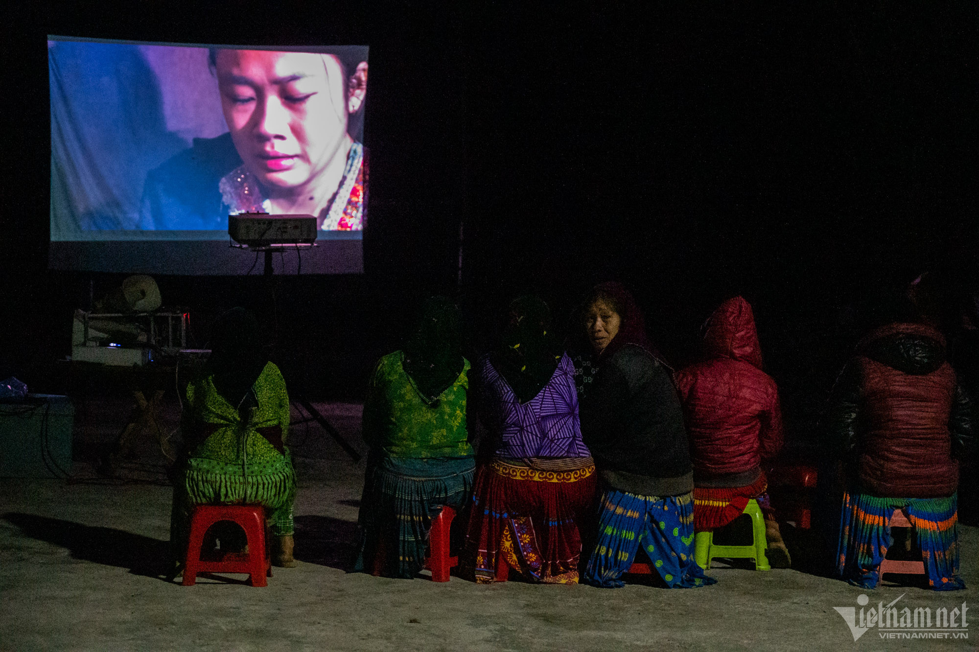 Lúc này, trời sao trên đầu lấp lánh rực rỡ. Từng cơn gió lạnh của vùng cao nguyên đá tràn xuống. Anh Tuân xoa đôi bàn tay rồi co ro ngồi ở góc hiên nhà. Quá quen với những thước phim một tuần chiếu vài lượt, nam tuyên truyền viên không nhìn về phía màn hình đang sáng. Thay vào đó, anh hướng mắt về phía các khán giả đang chăm chú dưới kia. Thỉnh thoảng Tuân rời vị trí để điều chỉnh hệ thống âm thanh hoặc đổi sang video khác.