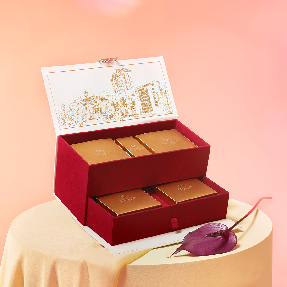 Bộ sưu tập bao gồm 4 vị bánh hảo hạng: sữa dừa hoàng kim, trà bá tước hoa hồng Đà Lạt, gà tiềm đông trùng hạ thảo và nấm linh chi, thập cẩm bào ngư và hải sản.