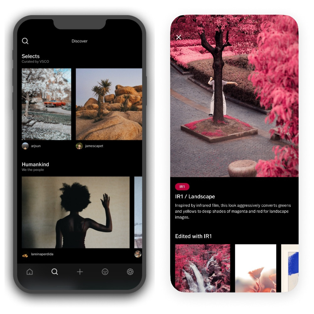 Ứng dụng cung cấp nhiều tỉ lệ khung hình để phù hợp chia sẻ lên các trang mạng xã hội. Ngoài ra, VSCO còn có cộng đồng sáng tạo cùng chia sẻ ảnh đẹp.