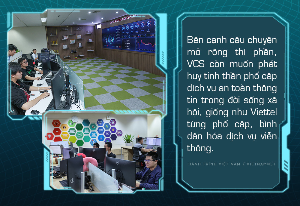 Chinh phục được hơn 200 khách hàng lớn, toàn những thương hiệu có tên tuổi trong đa dạng lĩnh vực, ngành nghề, Giám đốc Nguyễn Sơn Hải lưu ý, bên cạnh câu chuyện mở rộng thị phần, VCS còn muốn phát huy tinh thần phổ cập dịch vụ an toàn thông tin trong đời sống xã hội, giống như Viettel từng phổ cập, bình dân hóa dịch vụ viễn thông.