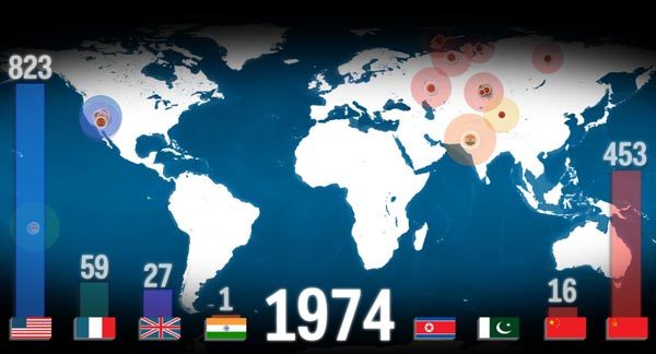 Một đoạn clip công bố gần đây đã thống kế lại mọi vụ nổ và thử nghiệm bom hạt nhân từng diễn ra trong lịch sử thế giới, ngoại trừ vụ thử nghiệm bom nhiệt hạch (bom H) dưới lòng đất mới nhất, hôm 5/1 vừa qua của CHDCND Triều Tiên.