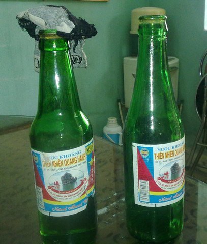 | Bom xăng bị thu giữ trong một vụ án |