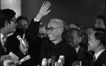 Ông Lê Đức Thọ tại buổi họp báo. Ảnh Corbis. |